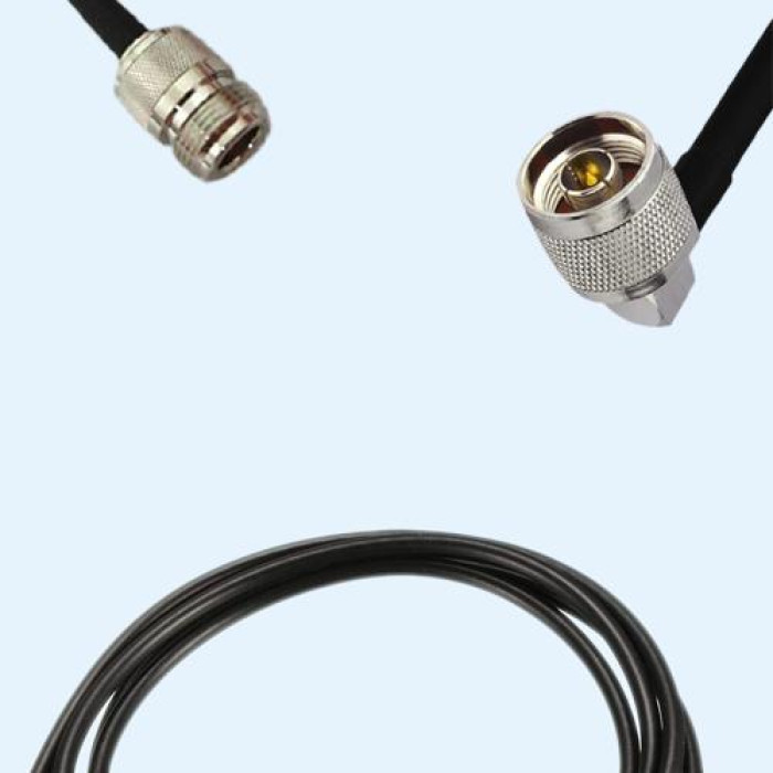 Low Loss Cable Assembly, N Female to N Male Right Angle 50 Ohm, RG174 Cable, Low VSWR.