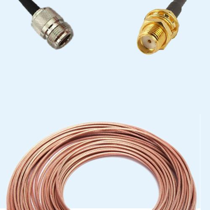 Low Loss Cable Assembly, N Female to SMA Bulkhead Female 50 Ohm, RG188 Cable, Low VSWR.