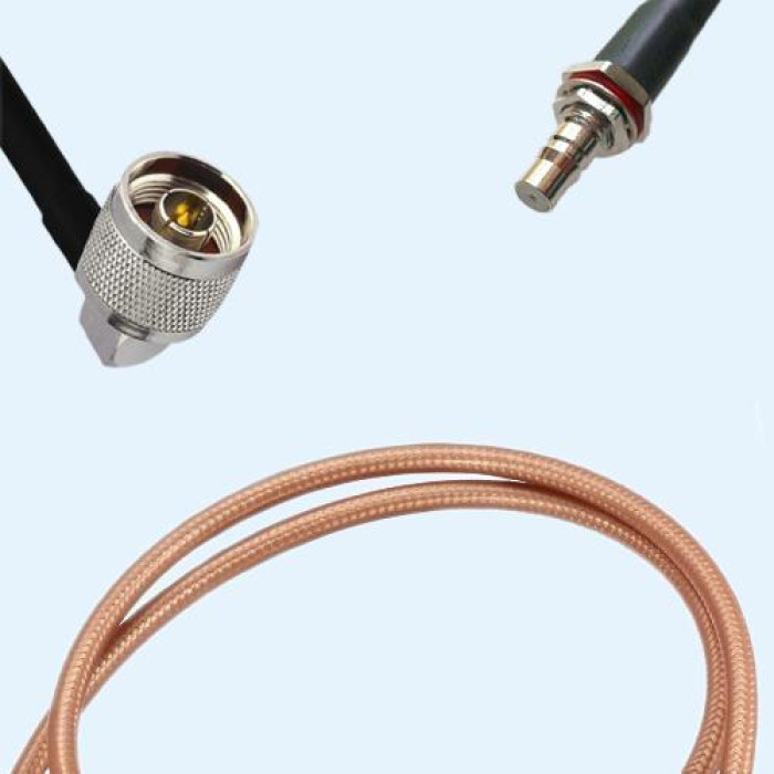 Low Loss Cable Assembly, N Male Right Angle to QMA Bulkhead Female 50 Ohm, RG400 Cable, Low VSWR.