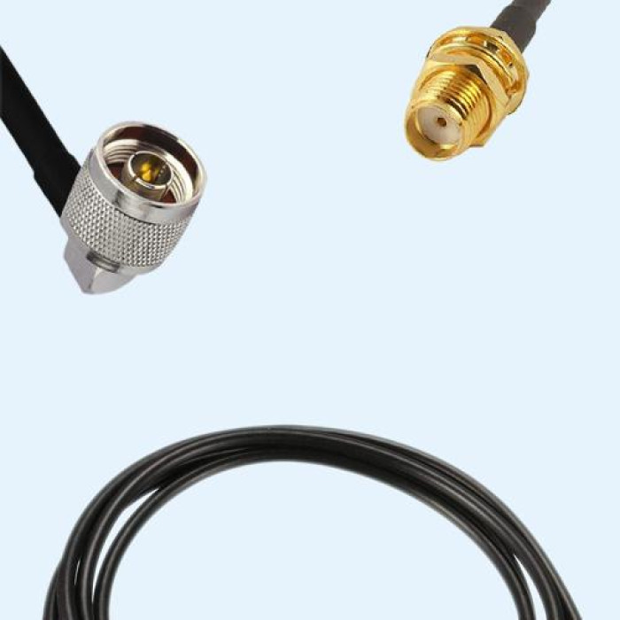 Low Loss Cable Assembly, N Male Right Angle to SMA Bulkhead Female 50 Ohm, LMR100 Cable, Low VSWR.