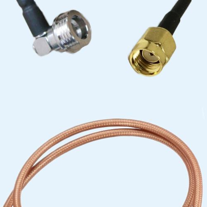 Low Loss Cable Assembly, QN Male Right Angle to RP SMA Male 50 Ohm, RG400 Cable, Low VSWR.