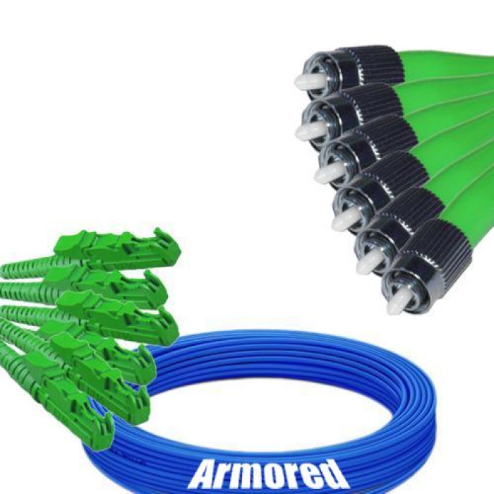Indoor Armored 6 Fiber E2000/APC to FC/APC Patch Cord, OS2 9/125 Singlemode.