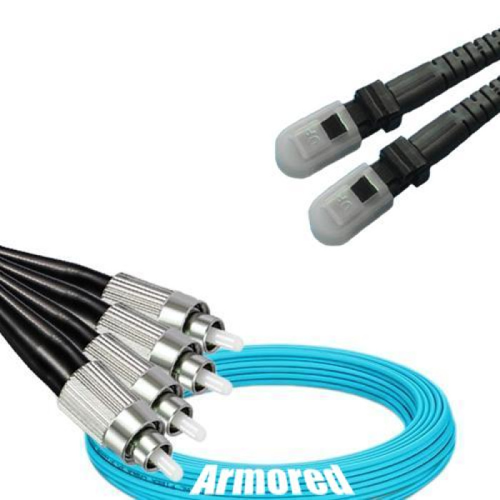 Indoor Armored 4 Fiber FC/UPC to MTRJ/UPC Patch Cord OM3 50/125 MM