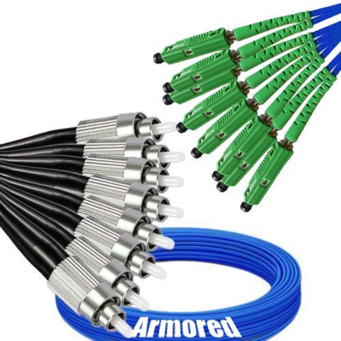 Indoor Armored 8 Fiber FC/UPC to MU/APC Patch Cord, OS2 9/125 Singlemode.