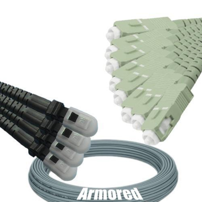 Indoor Armored 8 Fiber MTRJ/UPC to SC/UPC Patch Cord, OM1 62.5/125 Multimode.
