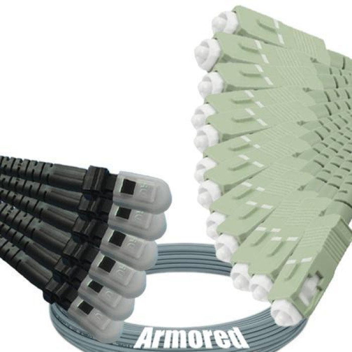 Indoor Armored 12 Fiber MTRJ/UPC to SC/UPC Patch Cord 50/125 Multimode