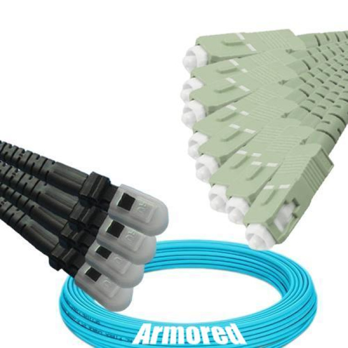 Indoor Armored 8 Fiber MTRJ/UPC to SC/UPC Patch Cord OM4 50/125 MM