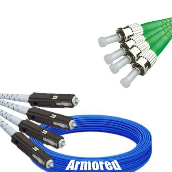 Indoor Armored 4 Fiber MU/UPC to ST/APC Patch Cord 9/125 Singlemode