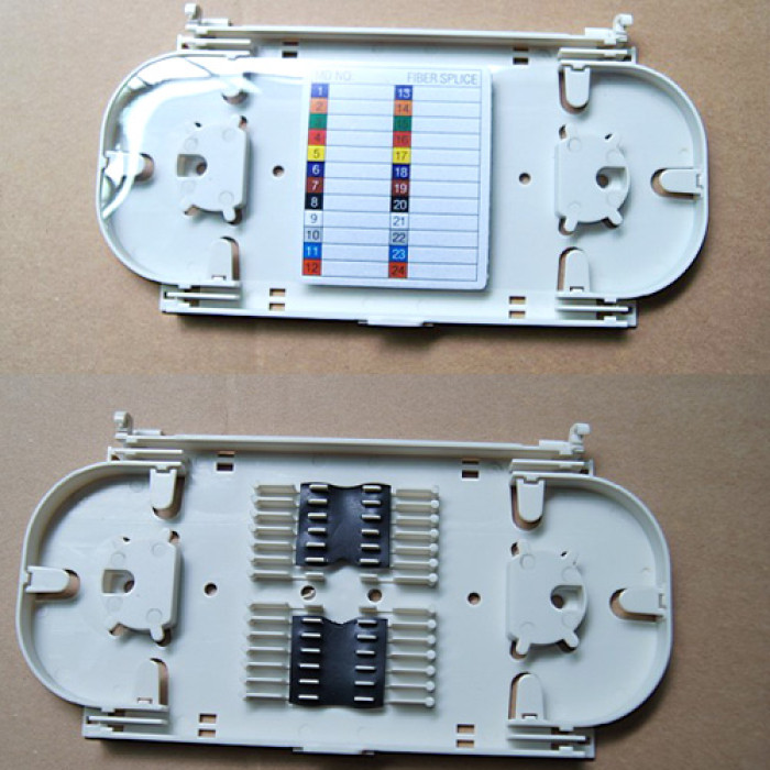 Fiber Optic 24 Fiber Splice Tray/Cassette, White Color. Size: 225mm(L)*108mm(W)*14mm(H)