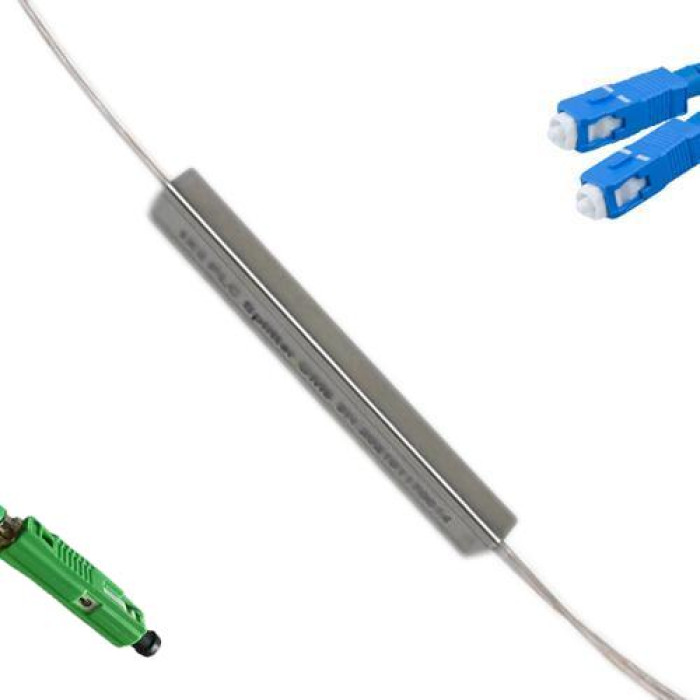 1x2 MU/APC to SC/UPC Mini-Module PLC Splitter, Wavelength 1260nm ~ 1650nm, G657A 9/125 Singlemode, Cable Jacket 0.9mm, Length 1 Meter on Each Side by Default or Custom.