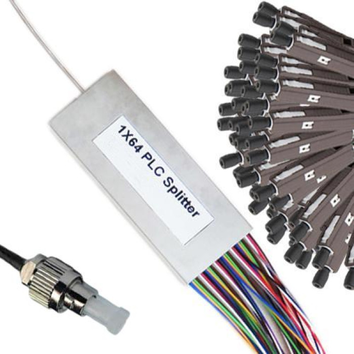 1x64 FC/UPC to MU/UPC Mini-Module PLC Splitter, Wavelength 1260nm ~ 1650nm, G657A 9/125 Singlemode, Cable Jacket 0.9mm, Length 1 Meter on Each Side by Default or Custom.