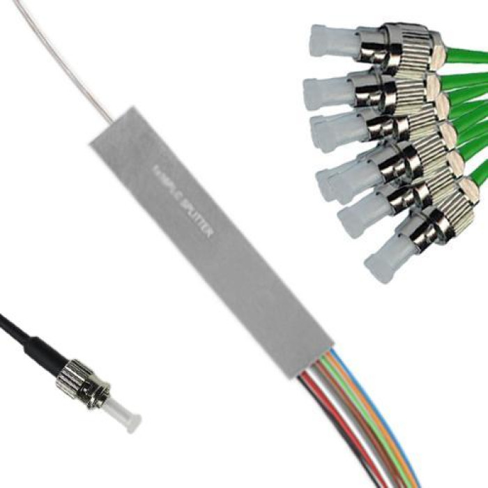 1x8 ST/UPC to FC/APC Mini-Module PLC Splitter, Wavelength 1260nm ~ 1650nm, G657A 9/125 Singlemode, Cable Jacket 0.9mm, Length 1 Meter on Each Side by Default or Custom.