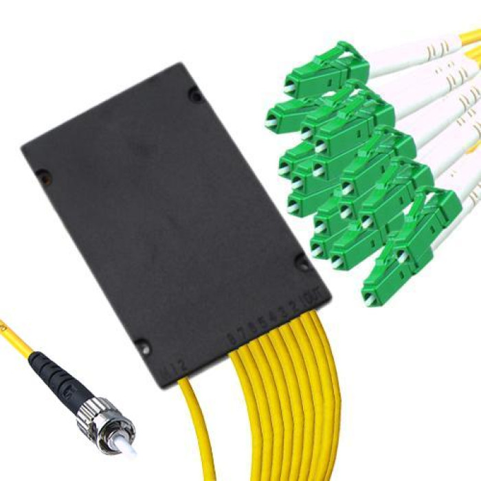 1x16 ST/UPC to LC/APC Module PLC Splitter, Wavelength 1260nm ~ 1650nm, G657A 9/125 Singlemode, Cable Jacket 2.0mm, Length 1 Meter on Each Side by Default or Custom.