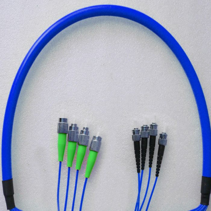 Indoor Armored 4 Fiber FC/APC to ST/UPC Patch Cord, OS2 9/125 Singlemode.