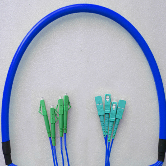 Indoor Armored 4 Fiber LC/APC to SC/UPC Patch Cord, OS2 9/125 Singlemode.