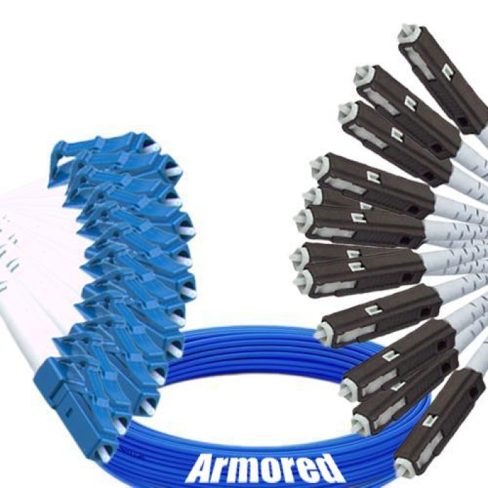 Indoor Armored 12 Fiber LC/UPC to MU/UPC Patch Cord, OS2 9/125 Singlemode.