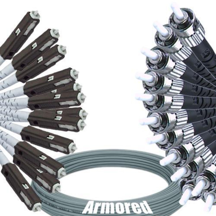 Indoor Armored 12 Fiber MU/UPC to ST/UPC Patch Cord 50/125 Multimode
