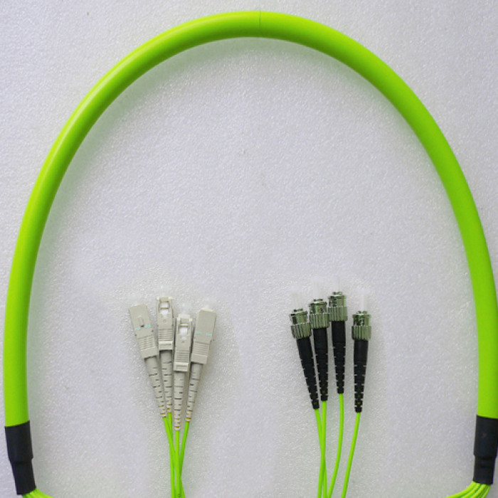 Indoor Armored 4 Fiber SC/UPC to ST/UPC Patch Cord, OM5 50/125 Multimode.