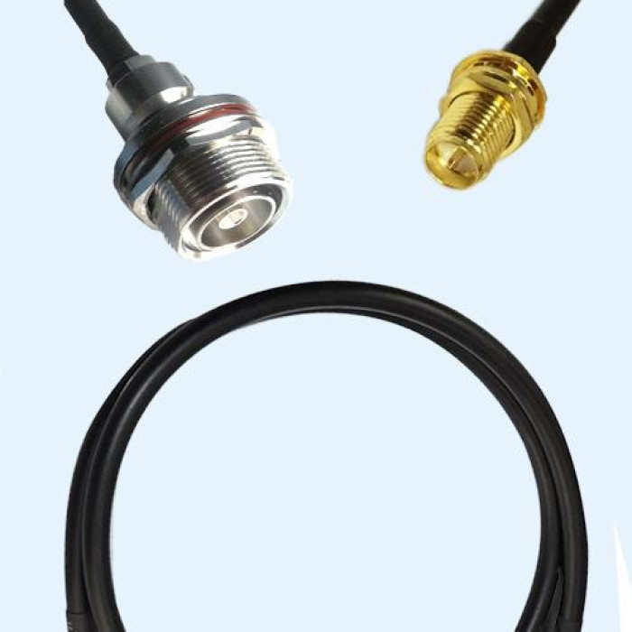 Low Loss Cable Assembly, 7/16 DIN Bulkhead Female With O-ring to RP SMA Bulkhead Female 50 Ohm, RG223 Cable, Low VSWR.
