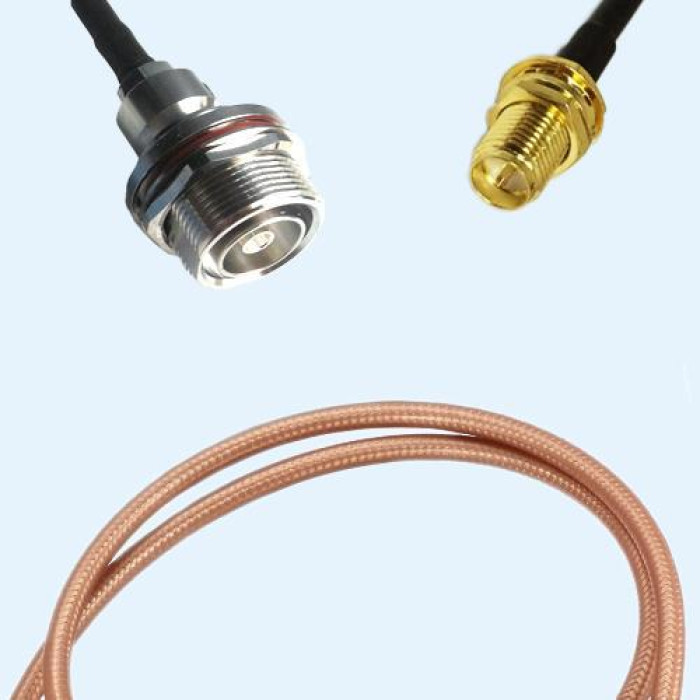 Low Loss Cable Assembly, 7/16 DIN Bulkhead Female With O-ring to RP SMA Bulkhead Female 50 Ohm, RG400 Cable, Low VSWR.
