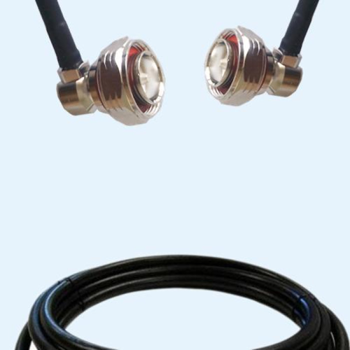 Low Loss Cable Assembly, 7/16 DIN Male Right Angle Connector on Each Side, 50 Ohm, LMR240FR Cable, Low VSWR.
