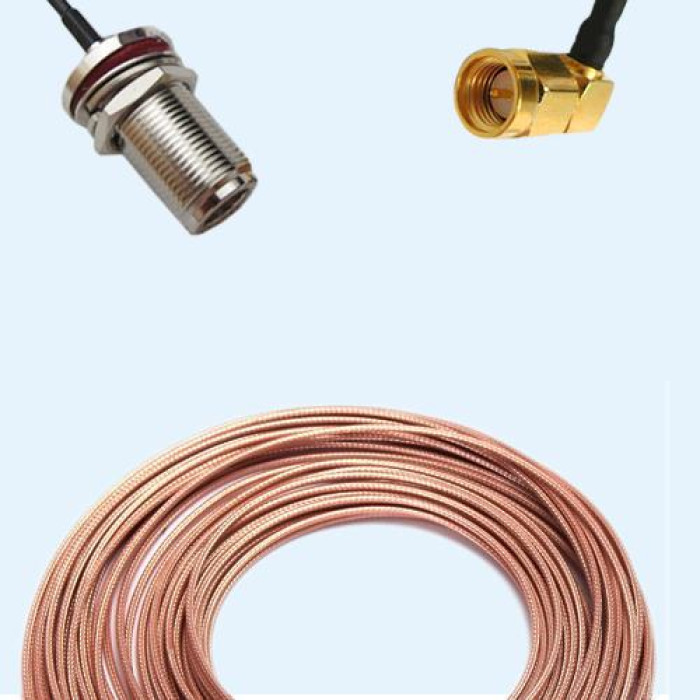 Low Loss Cable Assembly, N Bulkhead Female to SMA Male Right Angle 50 Ohm, RG188 Cable, Low VSWR.