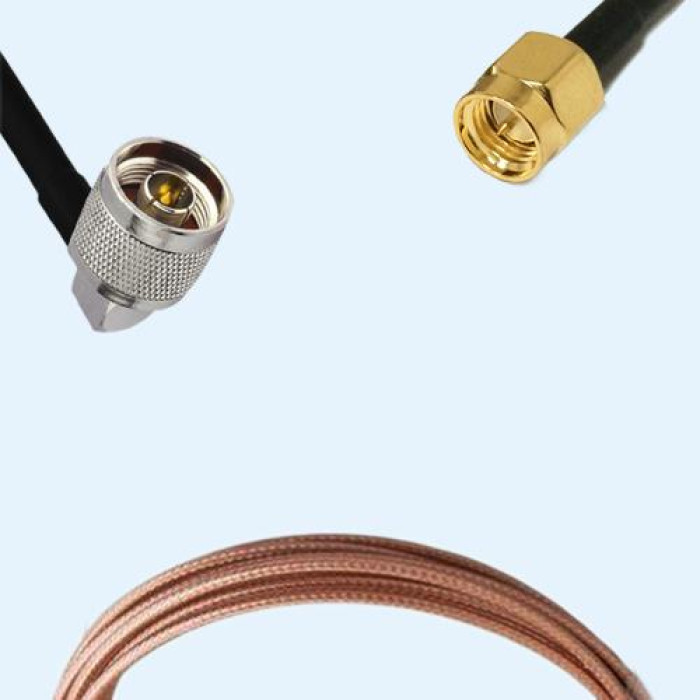 Low Loss Cable Assembly, N Male Right Angle to SMA Male 50 Ohm, RG316D Cable, Low VSWR.