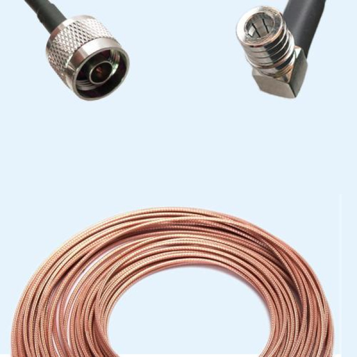 Low Loss Cable Assembly, N Male to QMA Male Right Angle 50 Ohm, RG188 Cable, Low VSWR.