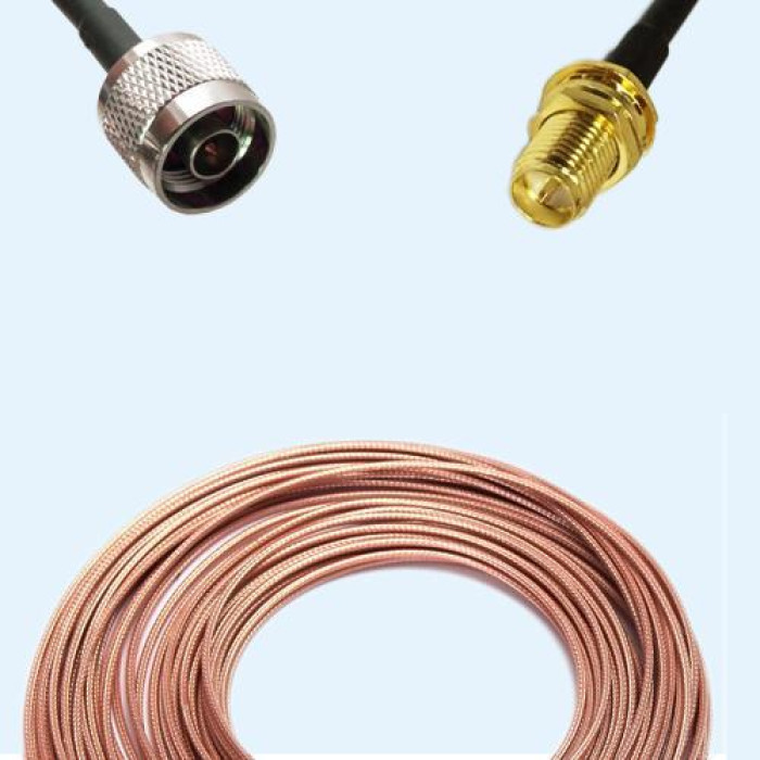 Low Loss Cable Assembly, N Male to RP SMA Bulkhead Female 50 Ohm, RG188 Cable, Low VSWR.