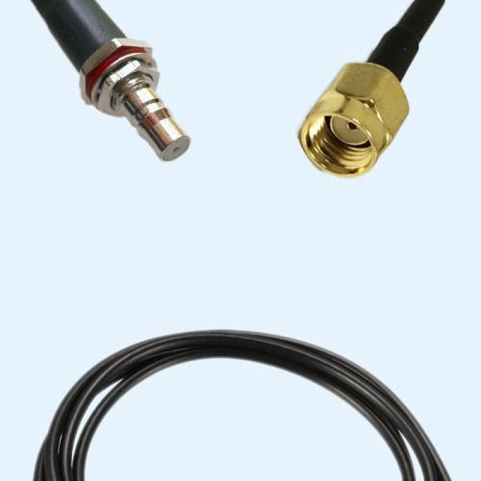 Low Loss Cable Assembly, QMA Bulkhead Female to RP SMA Male 50 Ohm, LMR100 Cable, Low VSWR.