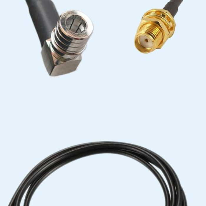 Low Loss Cable Assembly, QMA Male Right Angle to SMA Bulkhead Female 50 Ohm, RG174 Cable, Low VSWR.