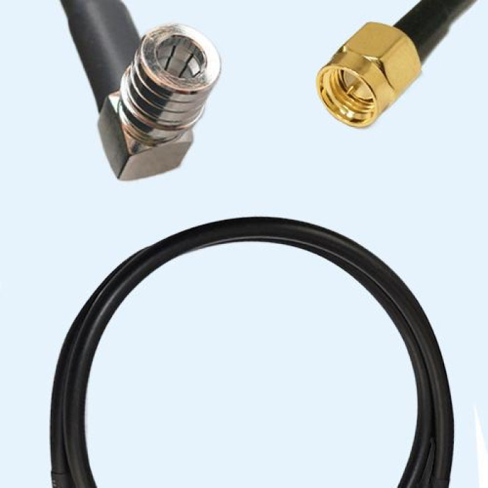 QMA Male Right Angle to SMA Male RG58 RF Cable Assembly