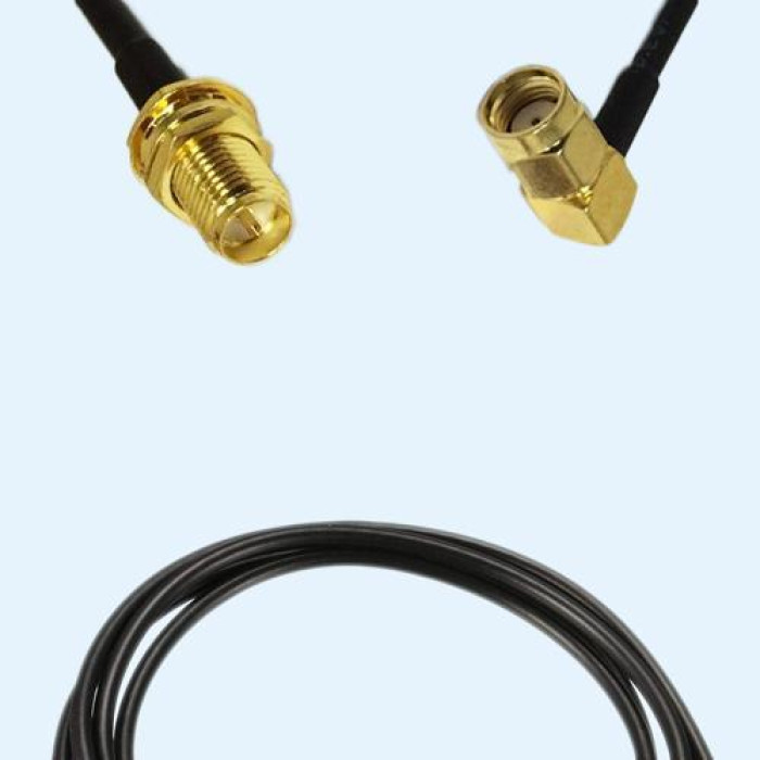 Low Loss Cable Assembly, RP SMA Bulkhead Female to RP SMA Male Right Angle 50 Ohm, LMR100 Cable, Low VSWR.