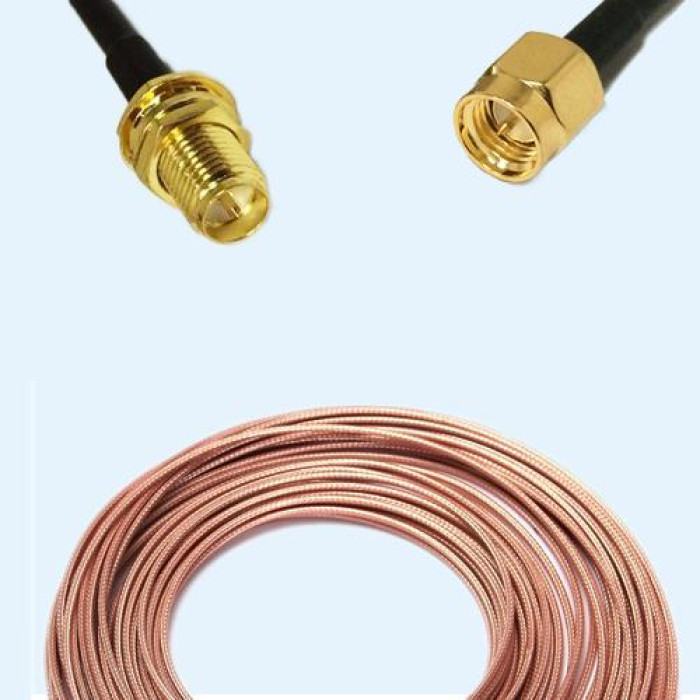 Low Loss Cable Assembly, RP SMA Bulkhead Female to SMA Male 50 Ohm, RG316 Cable, Low VSWR.