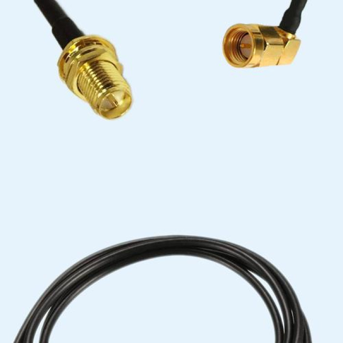 Low Loss Cable Assembly, RP SMA Bulkhead Female to SMA Male Right Angle 50 Ohm, RG174 Cable, Low VSWR.