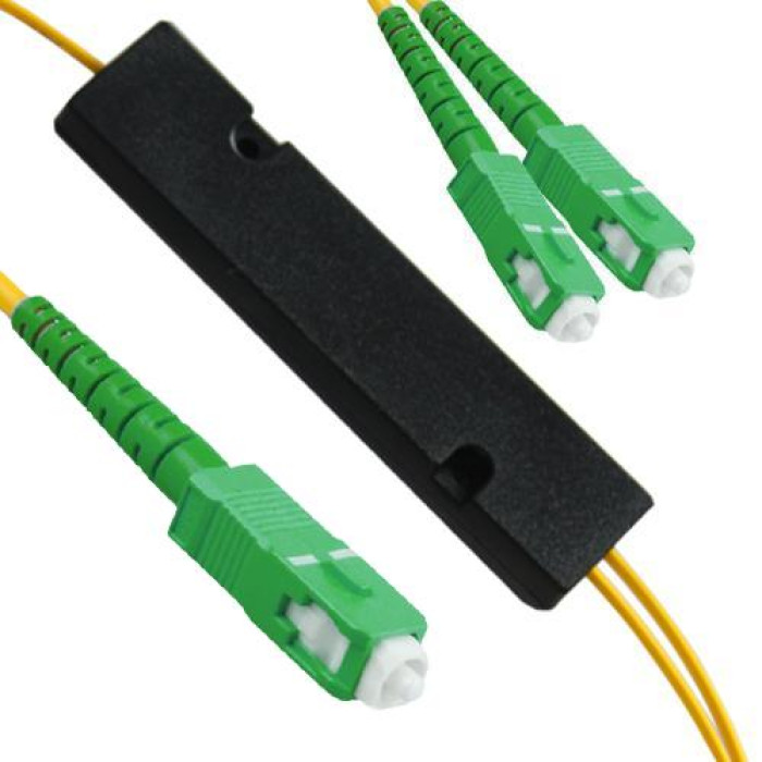 1x2 SC/APC to SC/APC FBT Splitter, OS2 9/125 Singlemode, Wavelength: 1310nm&1550nm, 0.9mm/2.0mm/3.0mm Optional, Length 1 Meter at Each Side by Default or Custom.
