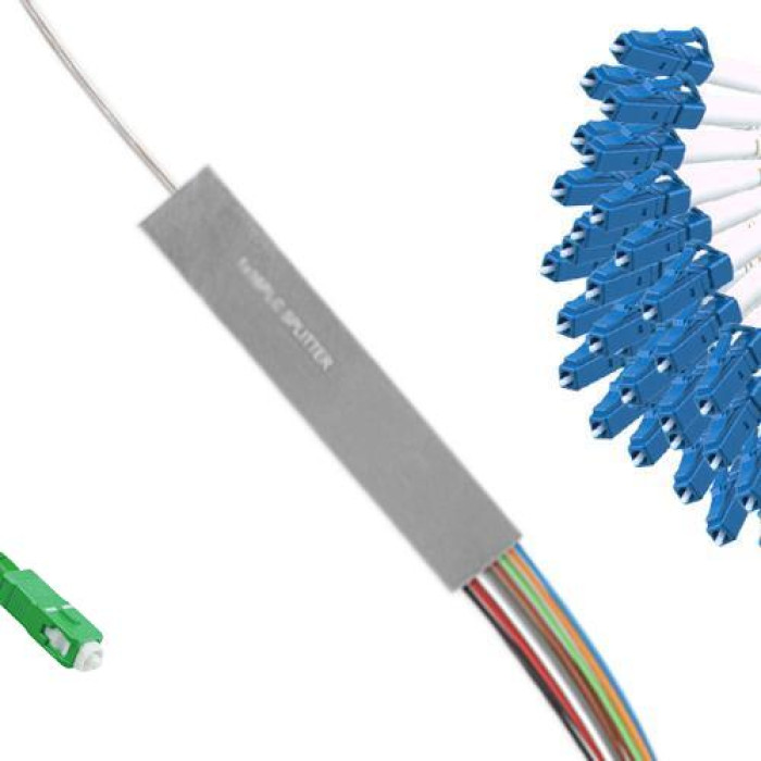 1x32 SC/APC to LC/UPC Mini-Module PLC Splitter, Wavelength 1260nm ~ 1650nm, G657A 9/125 Singlemode, Cable Jacket 0.9mm, Length 1 Meter on Each Side by Default or Custom.