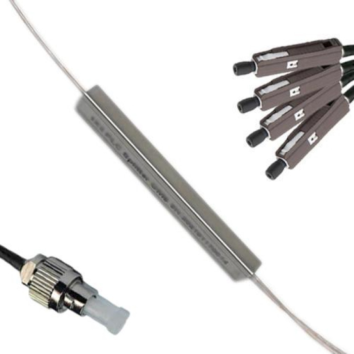 1x4 FC/UPC to MU/UPC Mini-Module PLC Splitter, Wavelength 1260nm ~ 1650nm, G657A 9/125 Singlemode, Cable Jacket 0.9mm, Length 1 Meter on Each Side by Default or Custom.